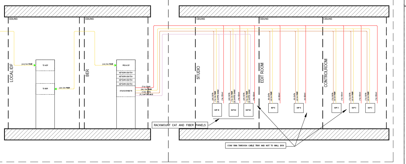 Structured cabling and fiber backbones for digital audio networks